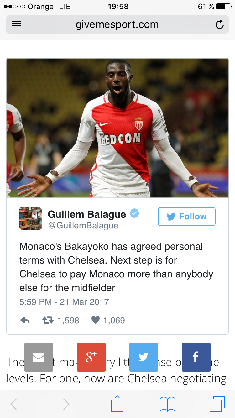 Chelsea offered 38 million (+5 bonus) to Monaco for Bakayoko. #CFC [L’Equipe]