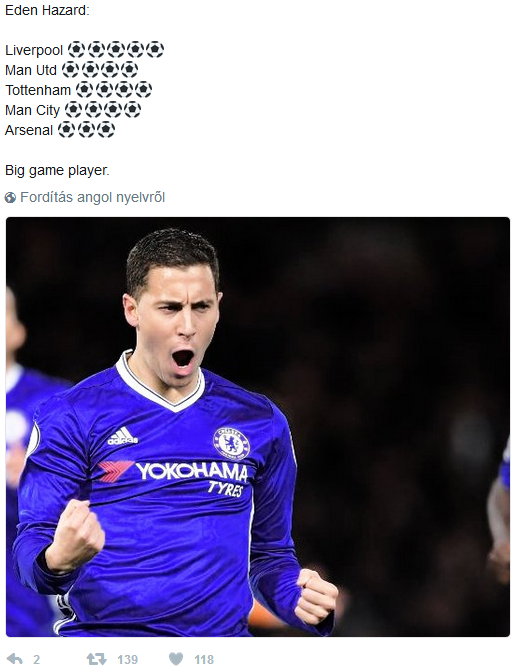 Tegnapi Hazard es Agüero golokkal updatelve. Mar csak Vardy elkepeszto statja veri Edent a top 6 elleni golokban 🙂