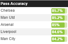 Azt vágjuk amúgy, hogy ennek ellenére is a Chelsea vezeti jelenleg a bajnokság „pass accuracy” vonatkozó statisztikáját? 🙂 Az mit bír?!