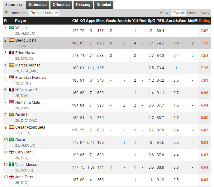 a stat az mindig stat, úgy is kell kezelni. Elég ránézni most a WhoScored-ra, azt máris leesik az ember álla, ha meglátja a csapatrangsort, benne, hogy Brana előrébb van, mint Kanté 🙂