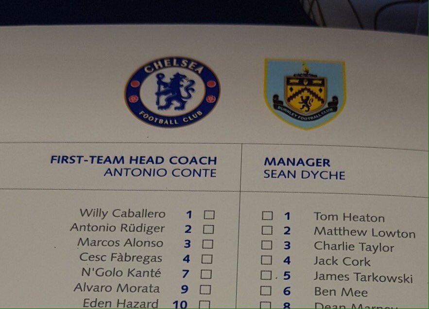 Sean Dyche nem tartozik a nagy újítók közé, így meglepődnék, ha ma nem a megszokott 4-4-2-es felállásban küldené fel a csapatát a pályára. Nálunk a már jól megszokott 3 védős rendszertől valószínűleg ma sem fog eltérni Conte mester, igaz eléggé fel kell forgatni a csapatot mivel több játékos sem lesz bevethető. Hazard és Bakayoko még nem épült fel, míg Pedro nemrég került fel a maródiak listájára. A sérülteken túl még lesz egy fontos hiányzónk, mivel Moses most fogja letölteni az eltiltását, amit az FA kupa döntőn bemutatott műesésével érdemelt ki. Mivel 2 hónap sem volt elég ahhoz hogy igazolnunk egy értelmes wingbacket, ezért ma Azpi vagy Rüdiger fogja helyettesíteni a nigériait. Személy szerint én a spanyolt tolnám egy sorral feljebb, mivel ebben a szisztémában az egyik legfontosabb ez a poszt és nem biztos hogy jó lenne az új fiúnak egyből egy ilyen hálátlan feladatot adni.