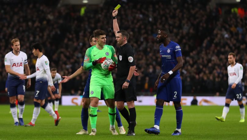 Vendég részről Hazard, Hodson-Odoi és Kanté voltak a legaktívabbak, miközben a hazaiak küszködtek a labdabirtoklásért. A 23. percben azonban jött a kavalkád. Egy előrevágott labdát Kane szerezte meg, majd eltolta Arrizabalaga mellett, akivel ütközött – játékon kívül, mert ekkor már a partjelző beintette a lesállást.